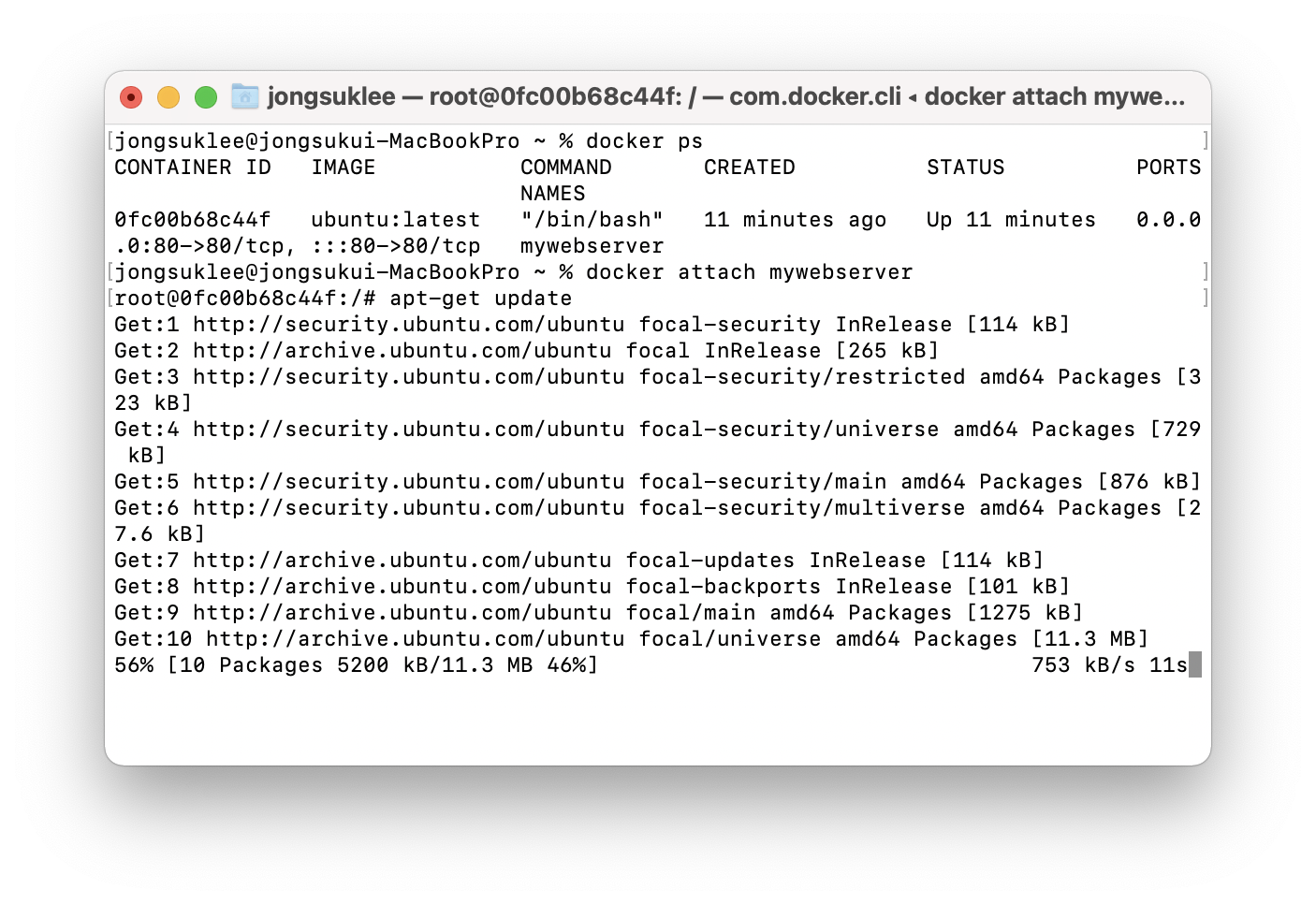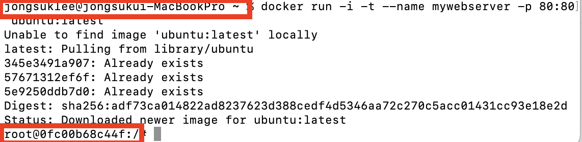 # docker run -i -t --name mywebserver -p 80:80 ubuntu:latest
