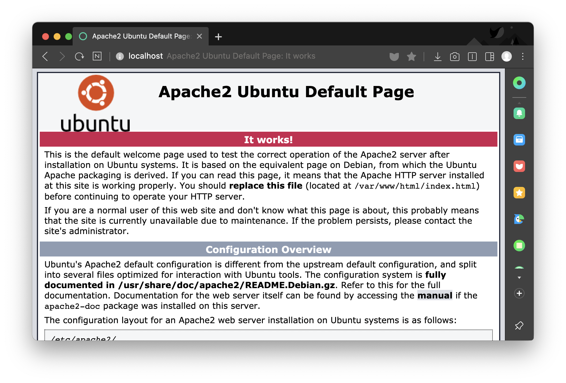 현재 Mac 버전으로 설치해놓은 상태라 http://localhost 로 접속 해본다.