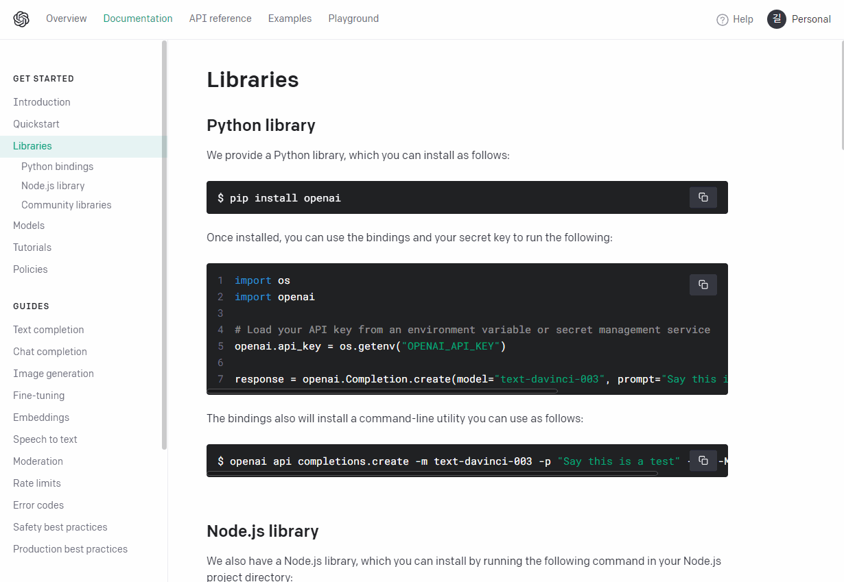 - 다양한 Library 제공 ( https://platform.openai.com/docs/libraries )
