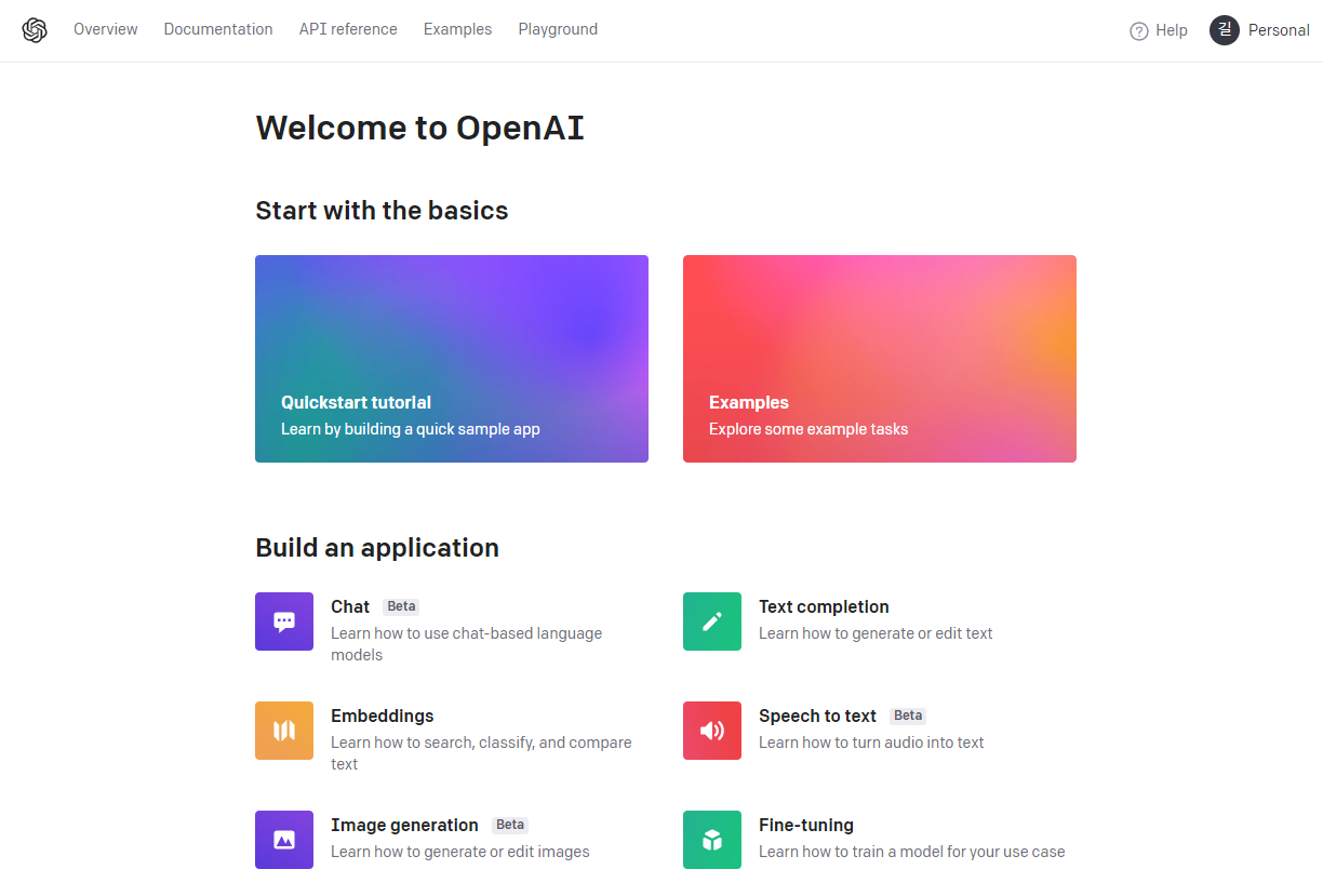 - API 도큐먼트 사이트 접속 ( https://platform.openai.com/overview )
