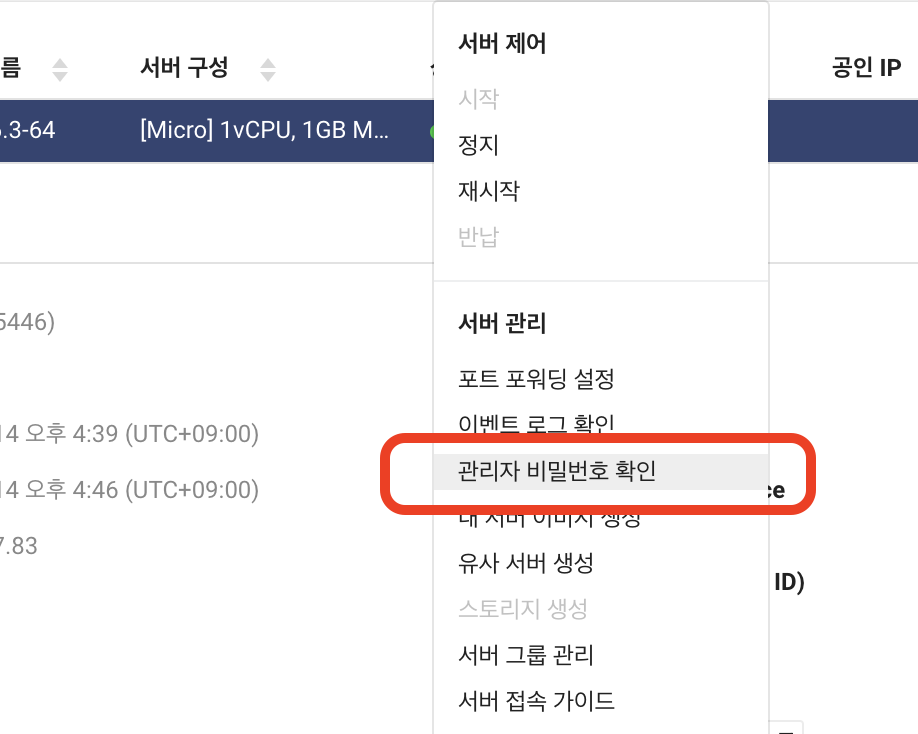네이버클라우드플랫폼에서 대충 선택해서 만들었던 OS 버전이 동일하게 표시된다.