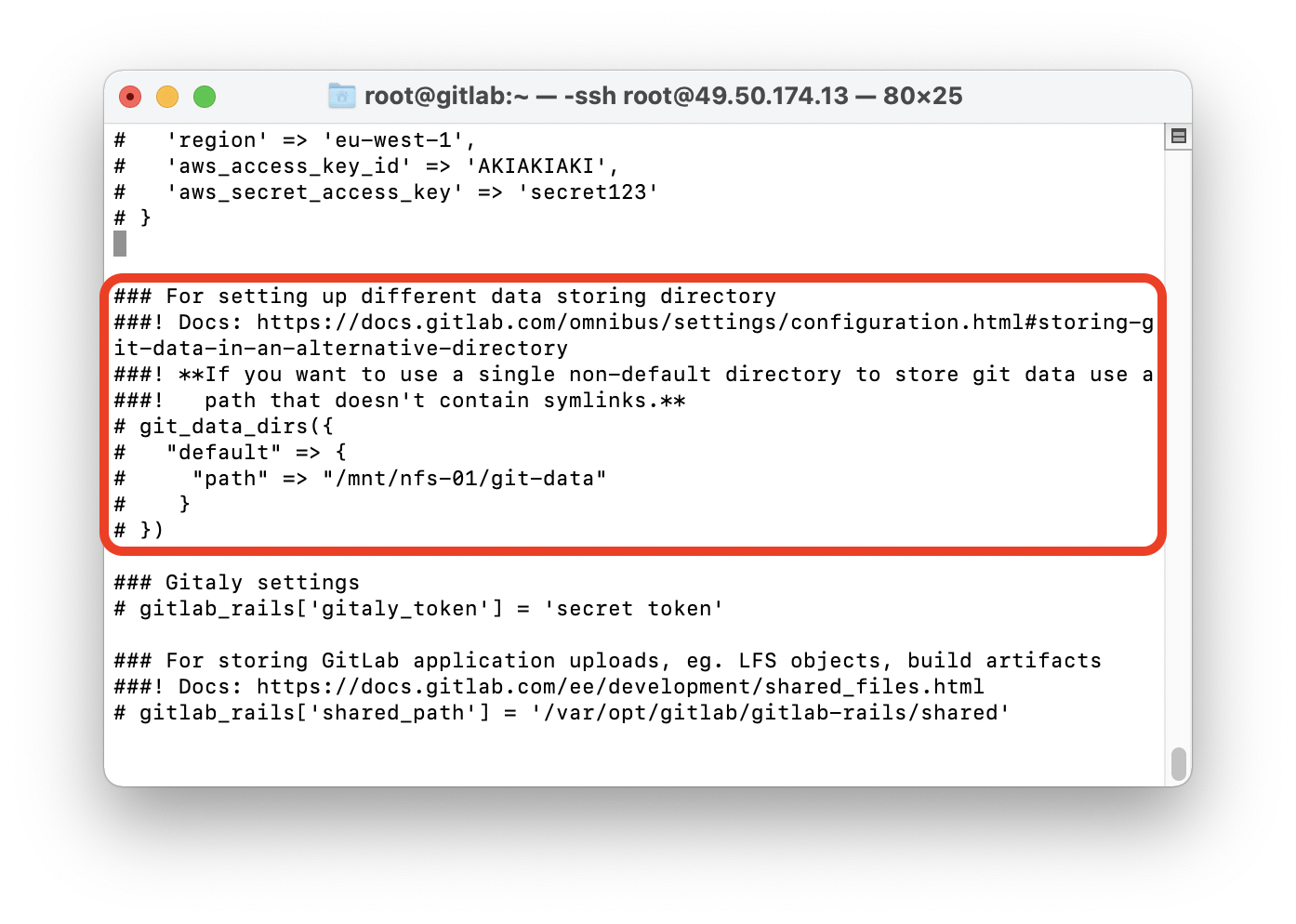 데이타 디렉토리 변경 : 디폴트는 /var/opt/gitlab/git-data