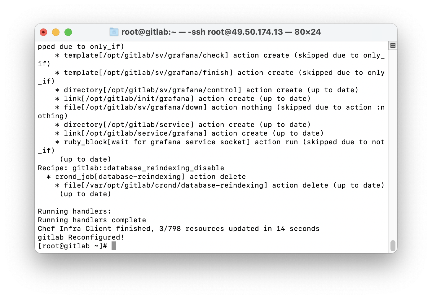 -> 그래서 한단계 더 올려서 Standard 타입으로 (2 CPU, 4GB Memory, 50GB SSD 로 셋팅) GitLab 패키지 설치 진행했더니 정상적으로 완료 메시지 표시 되고 웹상에서 접속도 잘 된다.