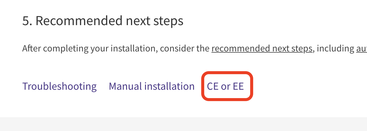 해당 버튼을 클릭 하면 맨 하단에 아래와 같이 CE or EE 라고 링크가 있다