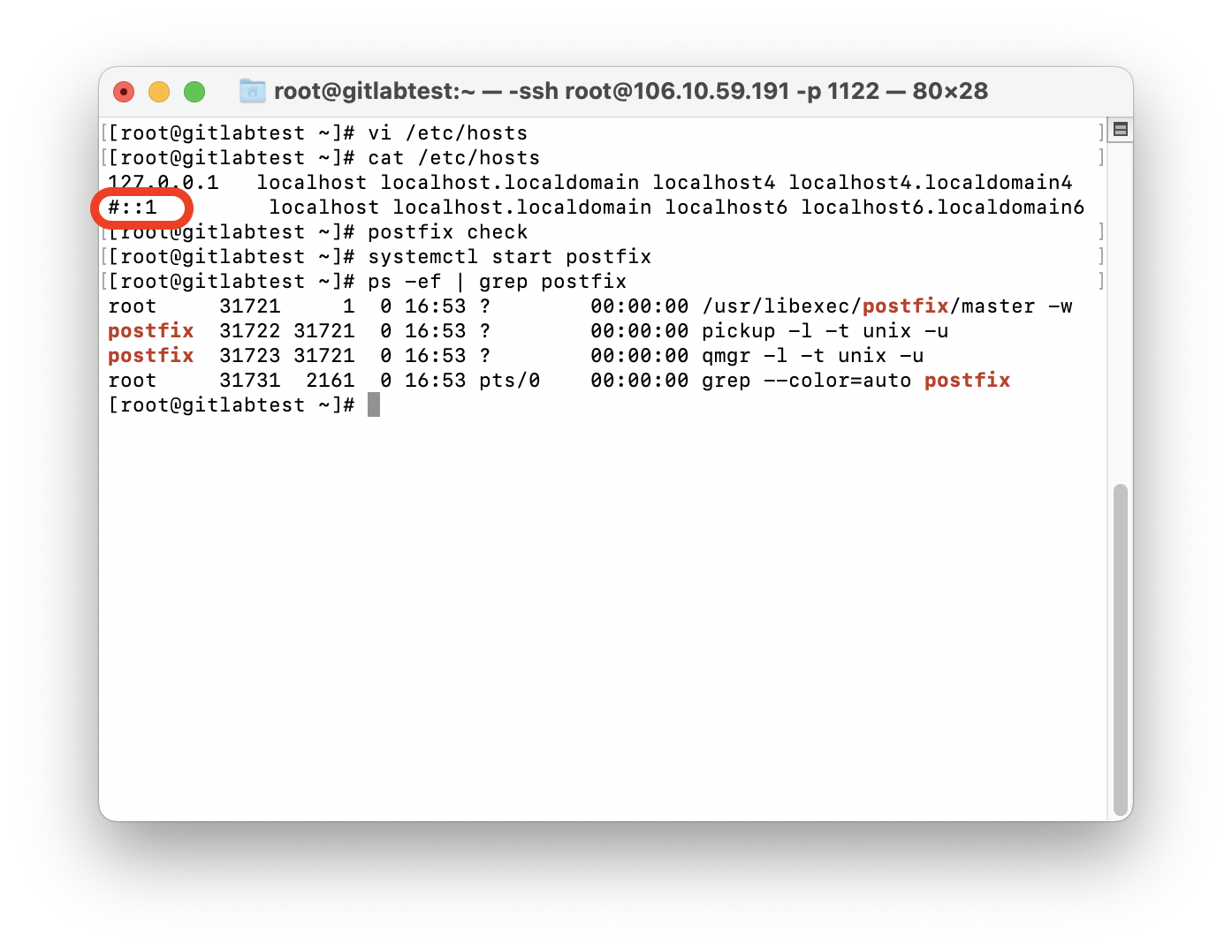 아무것도 표시 안되었으니 정상으로 보고 postfix 서비스 시작