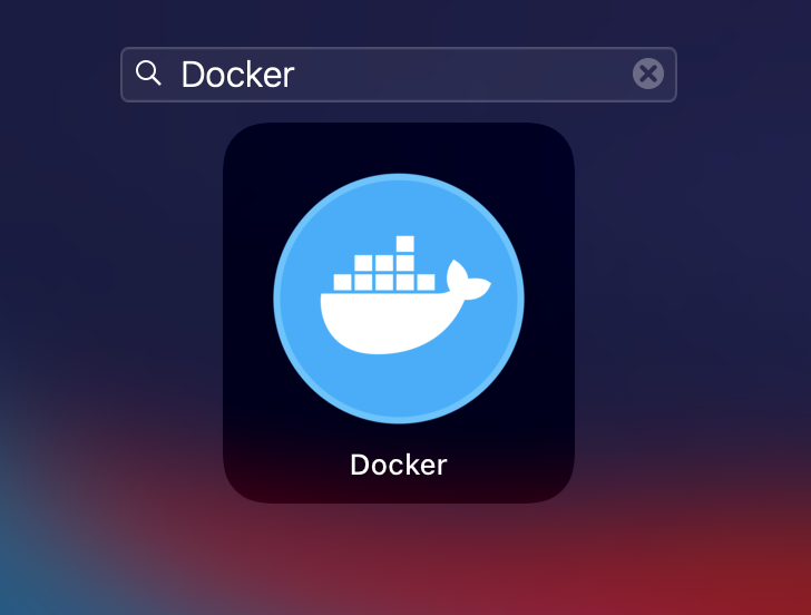 Launchpad 에서 Docker 라고 검색하면 아래와 같이 아이콘이 검색 되며 해당 아이콘을 실행 하면 된다.
