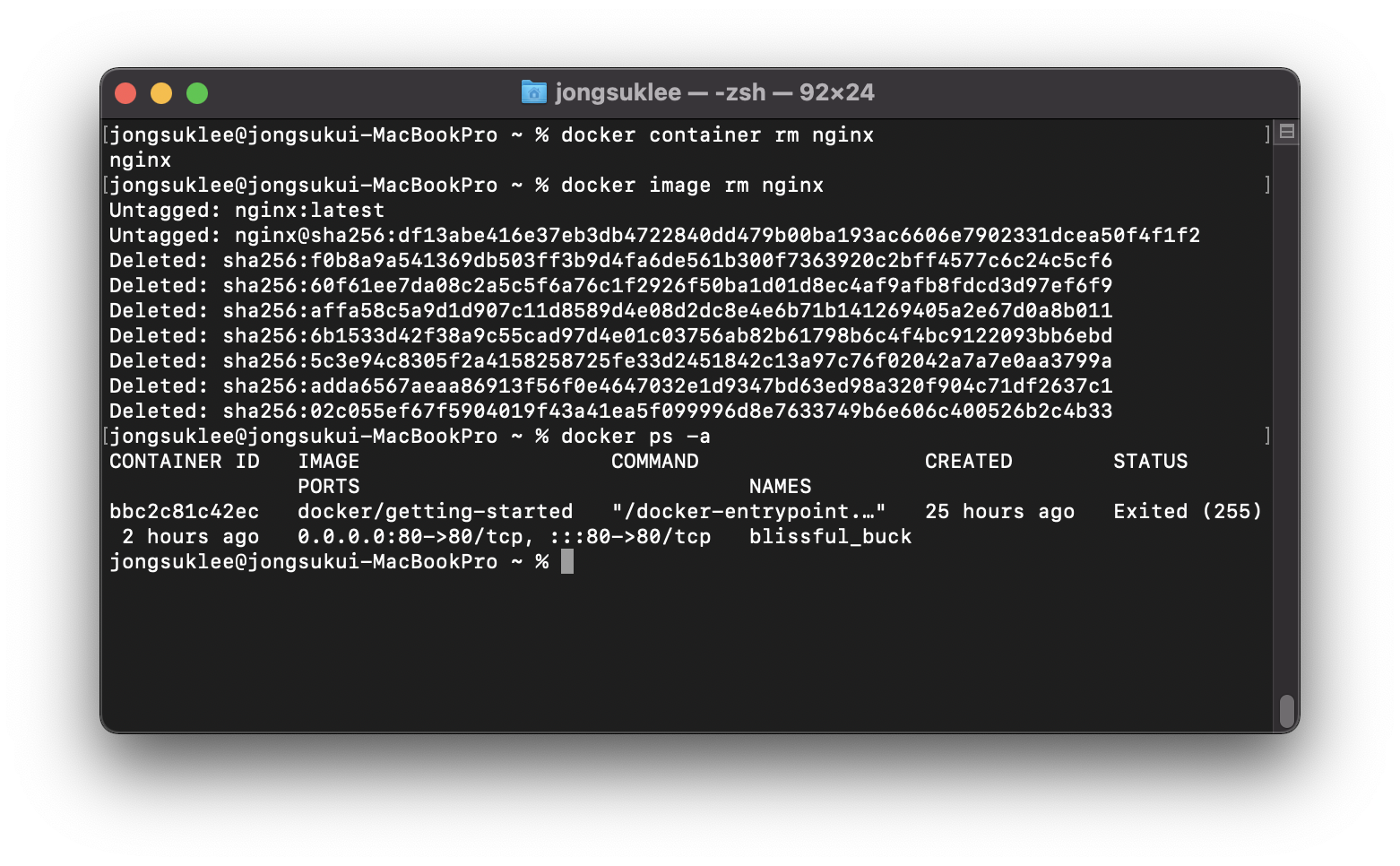 # docker container rm nginx => nginx 라는 이름의 컨테이너 삭제