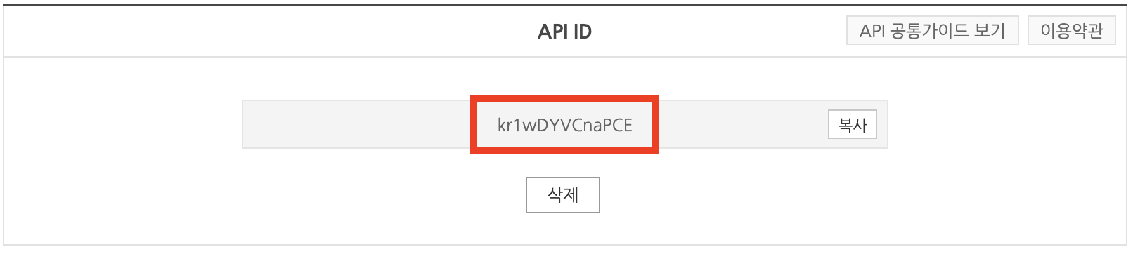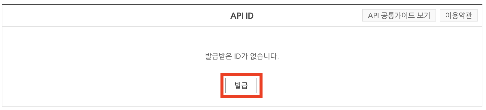 좌측 메뉴 중 API 메뉴로 접속 한다.