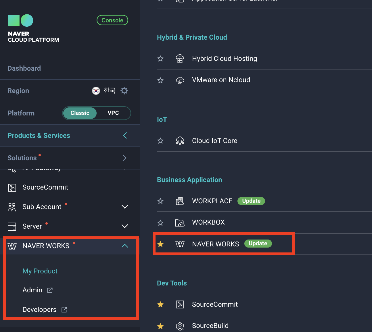 개발자 페이지 접속 : NAVER WORKS > Developers (https://developers.worksmobile.com)