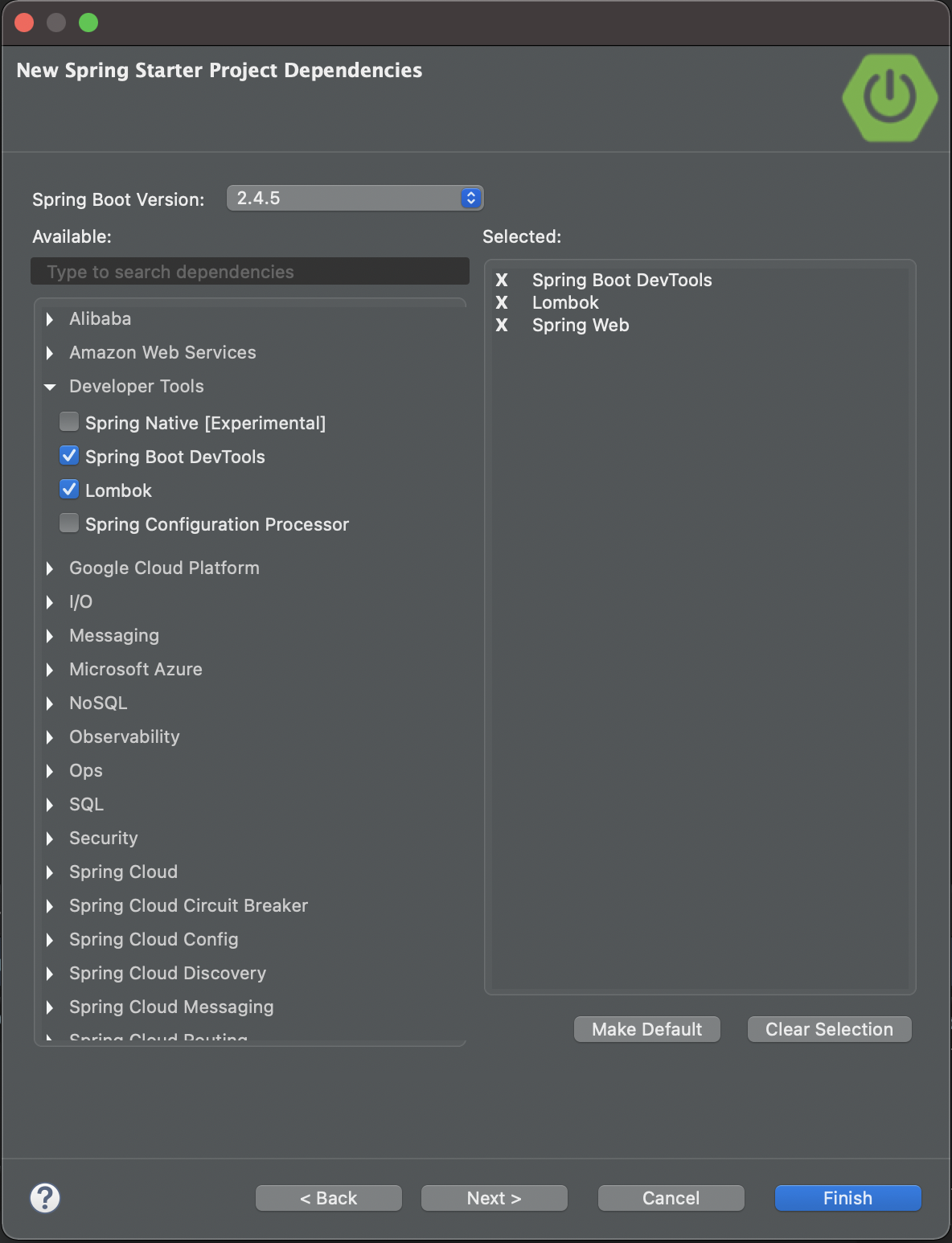 - Spring Web : 웹서비스 형태로 만들거라서 넣었다.