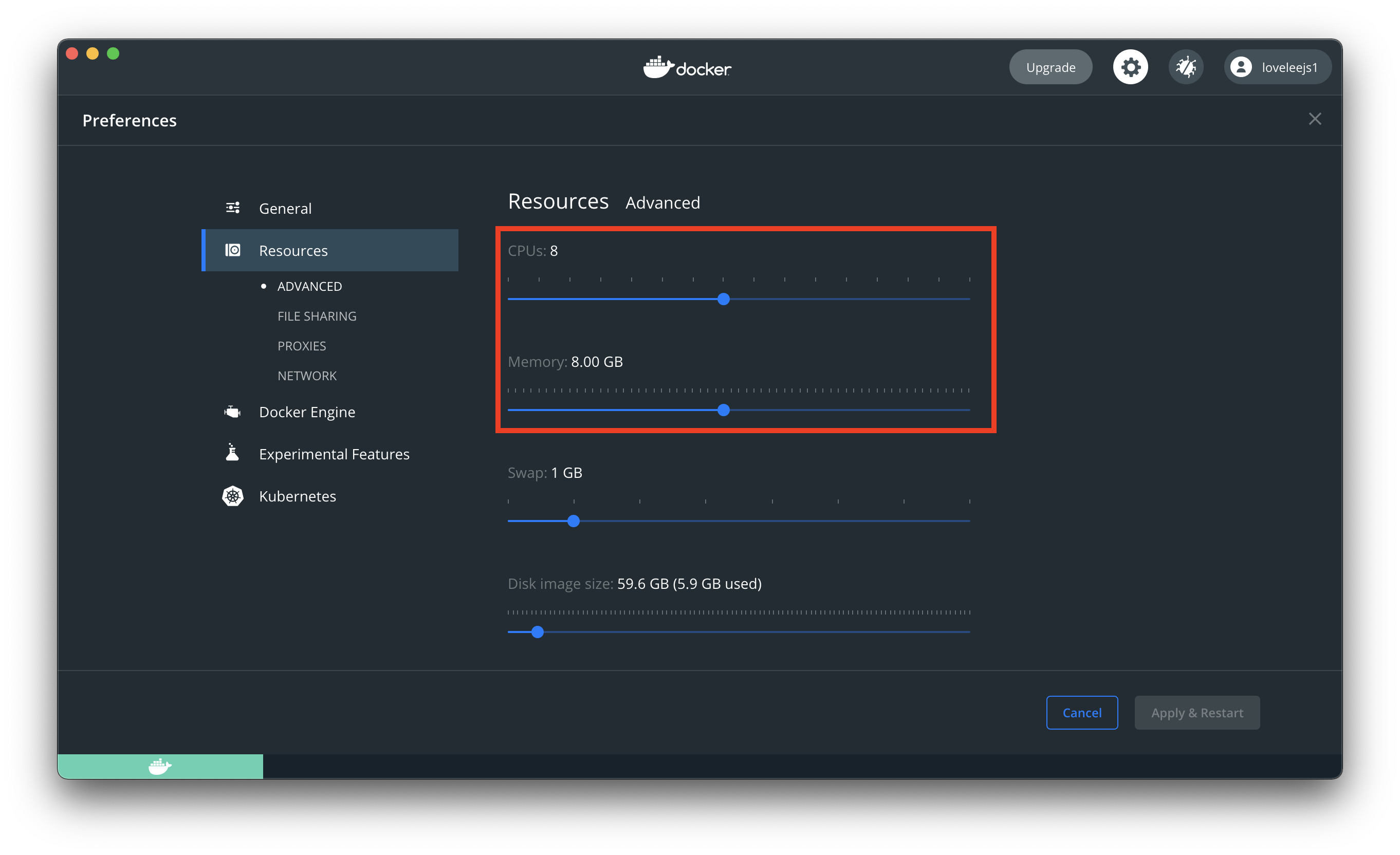 도커 Resources 변경